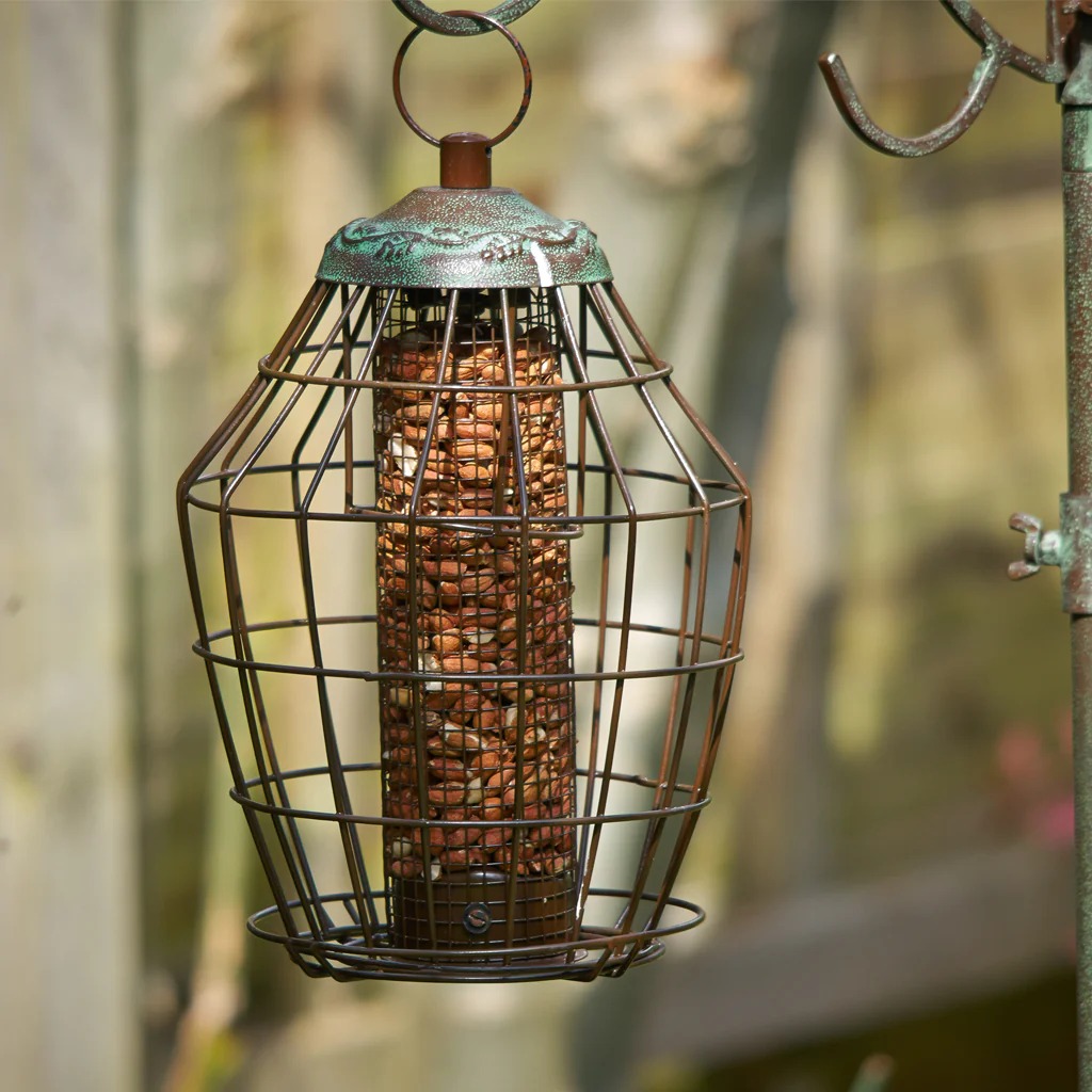 The Peckish Secret Garden Squirrel Proof Peanut Feeder is a robust and attractive solution for keeping your bird food safe. To use, simply unscrew the top, fill with peanuts, and replace the lid. It's advisable to position your feeder about 2 metres away from cover, such as trees or shrubs, allowing visibility while providing a safe retreat for birds. Please note that while this feeder effectively protects against adult grey squirrels and large birds, young squirrels and smaller birds may still access it. Enjoy birdwatching without the worry of larger pests!