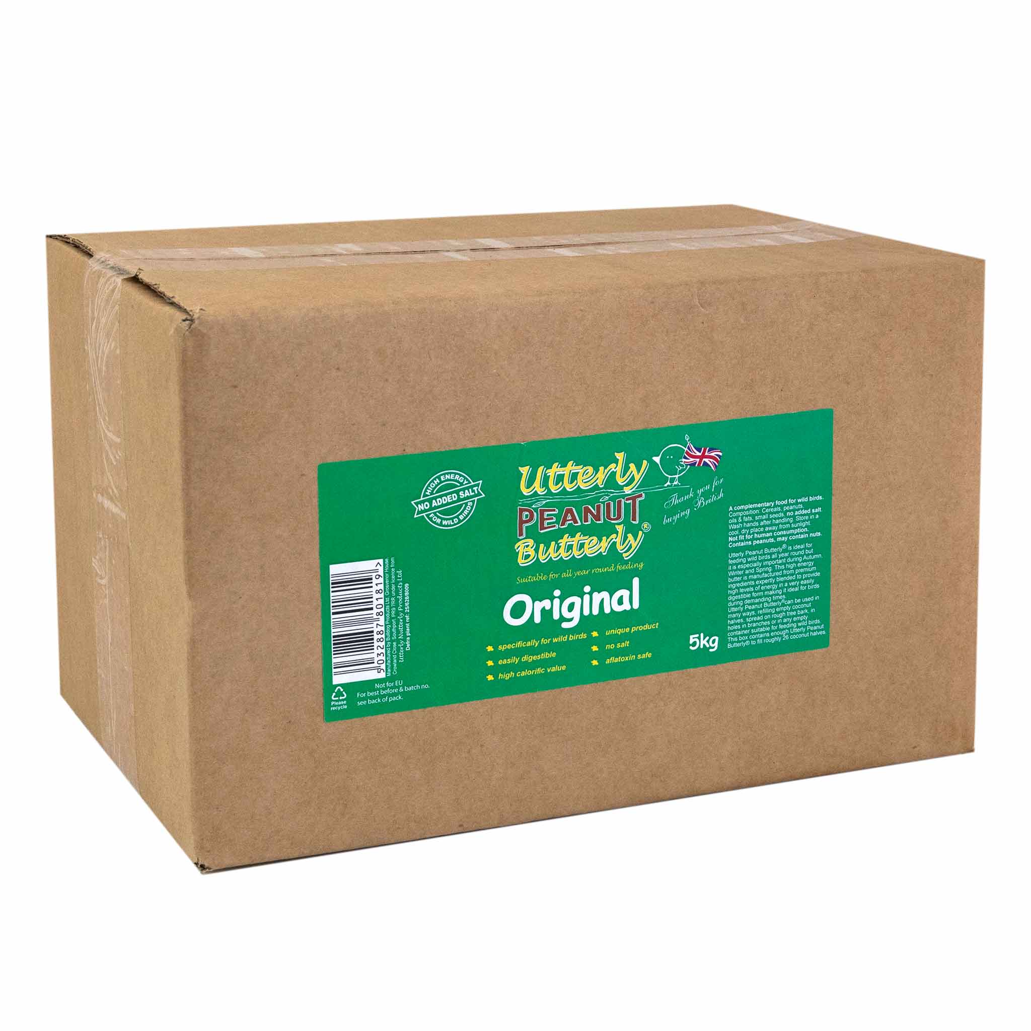 As the name suggests Utterley Peanut Butterly is made with peanuts blended with beef fat, vegetable oil, cereals and seeds to appeal to a wide range of wild birds. Its soft paste like texture makes it an ideal feedstuff for all year round as it has a high energy content but more importantly is extremely digestible keeping birds in tip top condition..